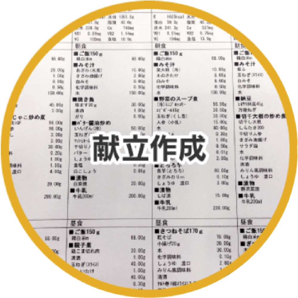 その為に、管理栄養士、栄養士が病態別、エネルギー別、食育、アレルギーなど目的別に対応し健康への配慮を忘れる事無く、日々美味しさ、いろどり、食べやすさを追求、お客様の声に耳を傾け決して味気のない食事にならぬよう工夫を凝らした献立作成に努めています。